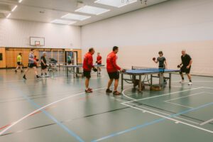 Der Samstagabend setzte dem Ganzen die Krone auf: Auf einer Tischtennisplatte in Schneidebrett-Format wurde Minitischtennis gespielt, während andere beim Jassen die Trumpfkarten fliegen liessen. Den krönenden Abschluss lieferte der Küchen-Rave beim Abwasch, organisiert und angeheizt von unseren jüngeren Vereinsmitgliedern. Mit Moshpit, Lichtshow und vibrierenden Geschirrbergen wurde zwischen Seifenschaum und Beats gefeiert. Ein Wochenende voller Lachen, Leckereien, kleiner Platten und grosser Momente – typisch TTC-Horn eben. Wer nicht dabei war, hat definitiv was verpasst